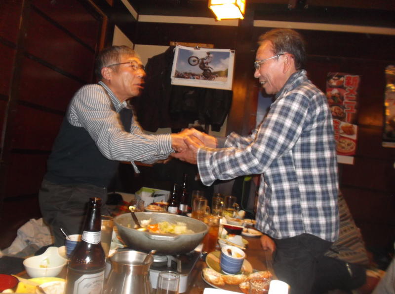 夜はもちろん少数(5人)ながら大宴会。なぜか滝沢会長は布団の中で般若心経を唱えていました(寝言?) これには少し訳があるのです 編集長:談
