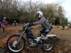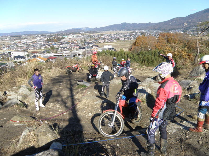 の選手が集合。ツインショックマシンと空冷モノサス車でビンテージトライアルを楽しみました。